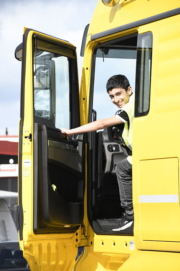Auch heute noch hängt jeder 5. Beruf in Bremen mit dem Hafen und der Logistik zusammen. Gemeinsam mit den dort tätigen Unternehmen und der Agentur für Arbeit ist es den Pädagoginnen des Hafenmuseums ein Anliegen, den Schülern und Schülerinnen im Bereich Verkehr und Logistik Möglichkeiten für Praktika und Ausbildungen nach der Schule aufzuzeigen. So besichtigten die Jugendlichen am zweiten Tag dieser Berufsorientierungsmaßnahme das Unternehmen SVG Bremen, die Berufskraftfahrer*innen aus- und weiterbilden und weitere Dienstleistungen anbieten. Dort hatten die Schüler*innen Gelegenheit, eine Auszubildende des Büromanagements und zwei Fahrlehrer*innen zu ihren Berufen und deren Arbeit zu befragen. Als Highlight des Tages durften alle SchülerInnen selbständig unter Anleitung der Fahrlehrer einen LKW bzw. PKW fahren. So macht Berufsorientierung Spaß.