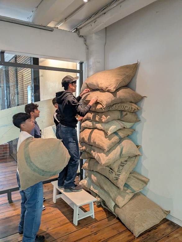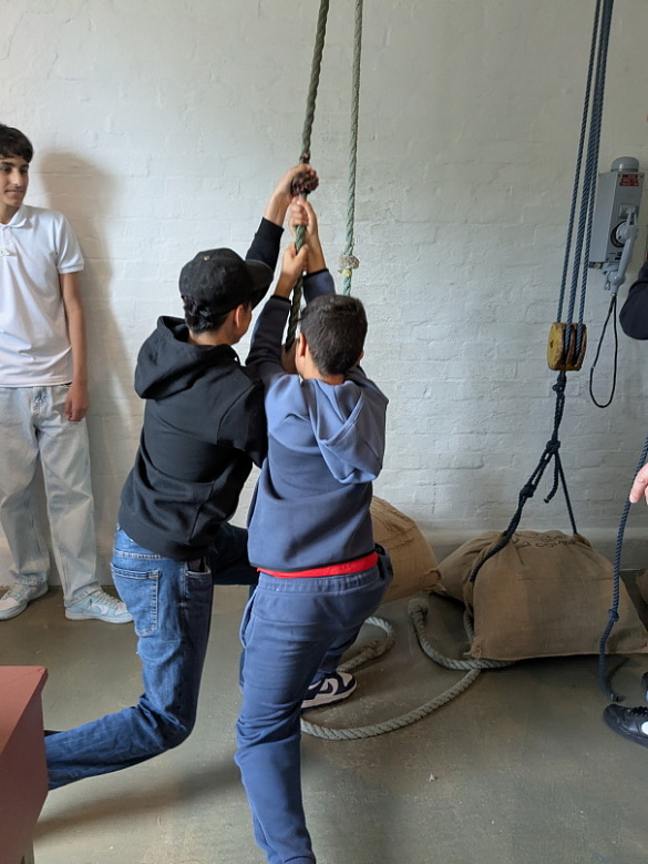 Im Rahmen des Berufsorientierungsunterrichts besuchte die Klasse 8d der RzBO das Hafenmuseum in der Bremer Überseestadt. Dort wurden die Schüler und Schülerinnen in die harte Arbeit der Hafenarbeiter von früher mittels des Stapelns von Säcken eingeführt. Auch wenn die Säcke keine 60 kg wie damals wogen und sie keine 1000 Stück pro Tag stapeln mussten, kamen die Schüler*innen ordentlich ins Schwitzen. Zudem lernten sie verschiedene Berufe im Bereich Verkehr und Logistik kennen. Am Beispiel einer Lieferkette des Kaffees vom Anbau bis zur fertigen Tasse Kaffee wurden die einzelnen Stationen des Handels verfolgt und jeder Station die entsprechenden Berufe zugeordnet.