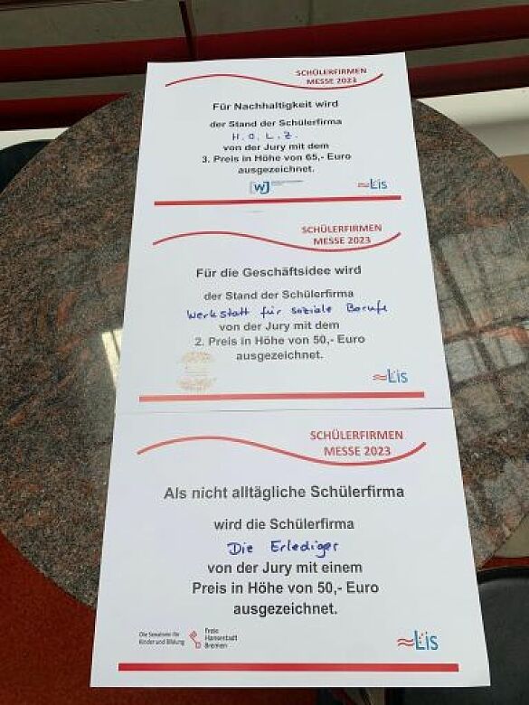 3 unserer Schülerfirmen haben einen Preis gewonnen: